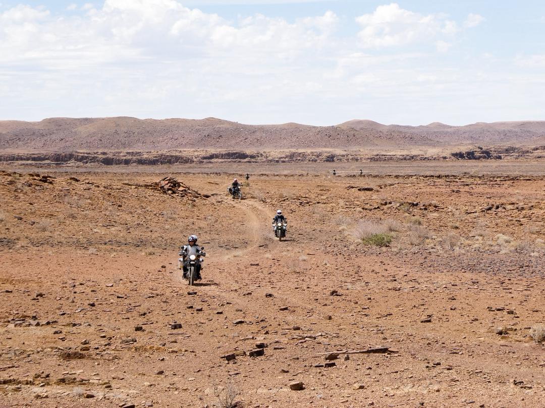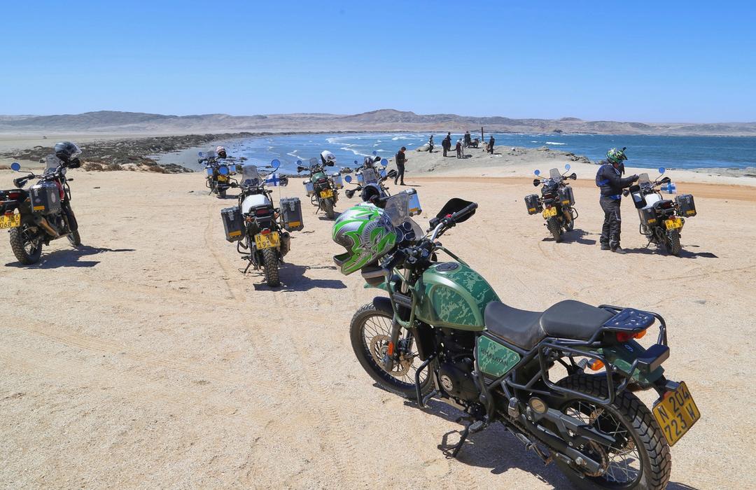 Continue your ride along the Skeleton Coast and inland through stunning desert terrain.